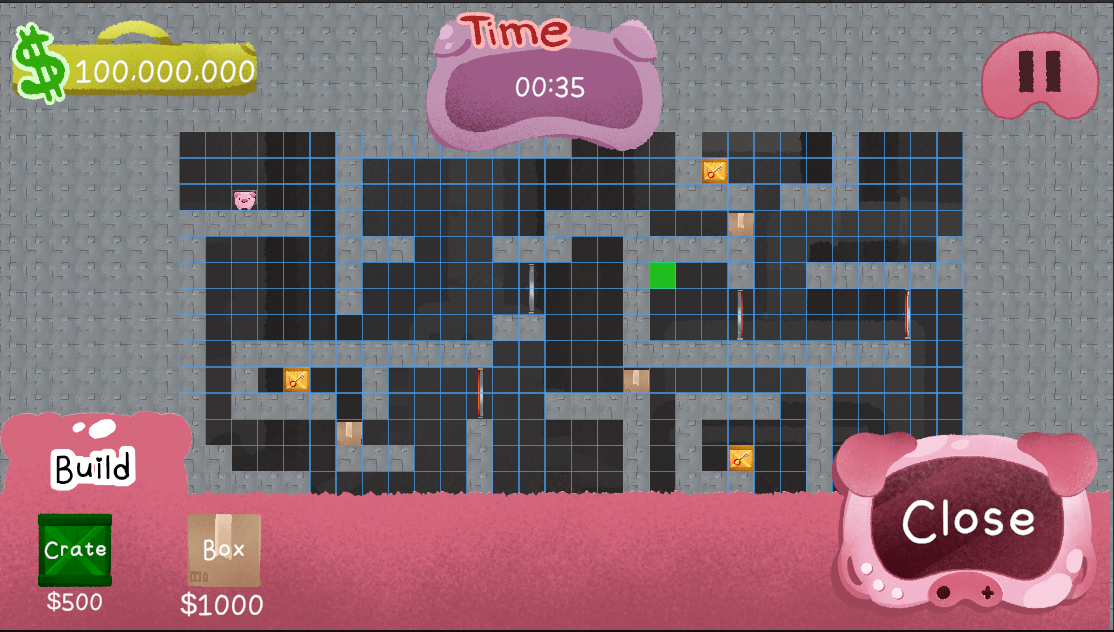 Play as Piggles and escape the Big Bacon Corporations with the money PIggles have!